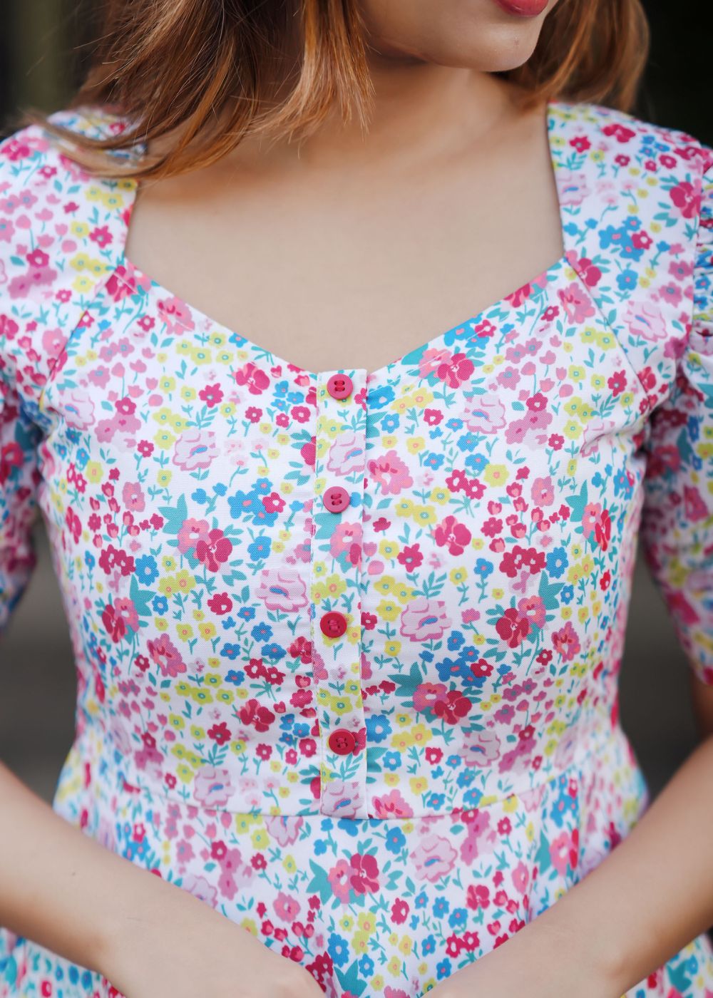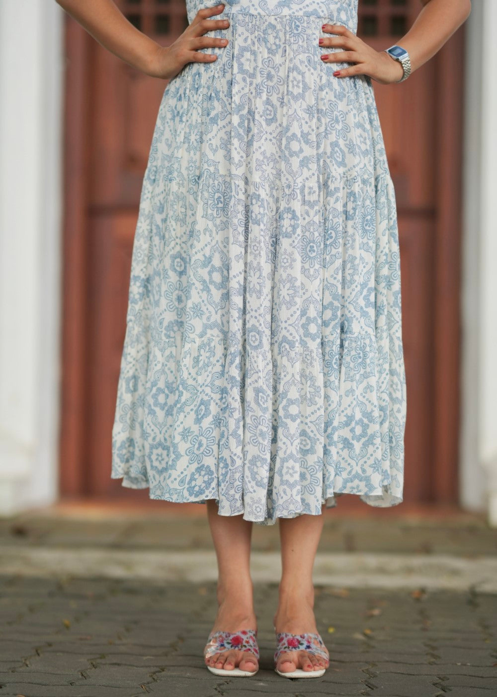 This black linen dress with blue floral print is a swirl of dreamy charm and effortless grace.