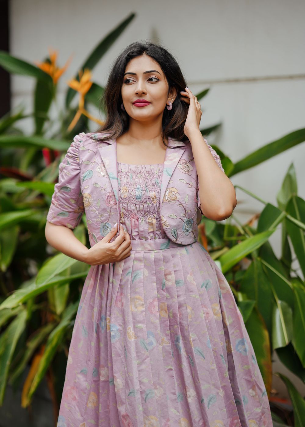 This burgundy and cream floral print dress is a swirl of berry charm and timeless elegance.