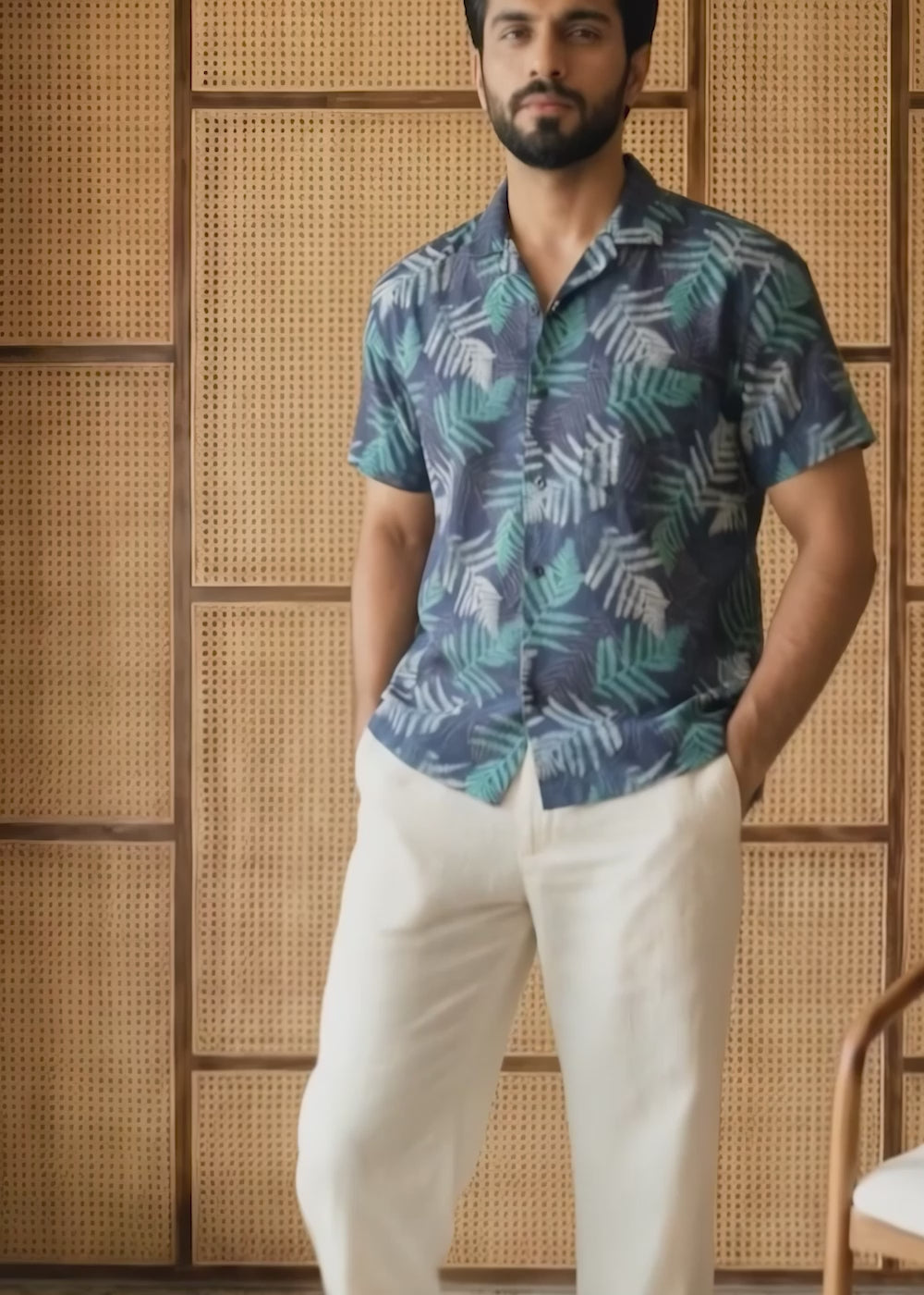 Make a laid-back statement with the Midnight Fern shirt — a resort-ready style featuring an all-over tropical fern print in deep navy, teal, and sage. Crafted from a lightweight linen-blend, it keeps you cool and comfortable whether you're heading to a beach getaway or a casual evening out.